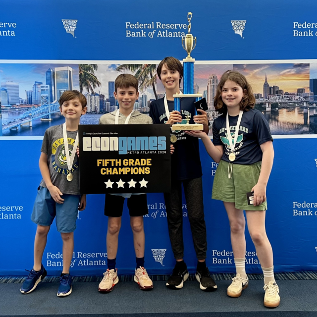 The Econ Games is a competitive event for fourth and fifth grade students. Over three rounds, the teams apply their knowledge of economics and personal finance by creating and participating in an assembly line, taking a critical thinking test, and developing and presenting an idea for a product that solves a real-world problem. The event is largely invitation-only at the moment. If you are interested in bringing a team, please contact Angie Battle.