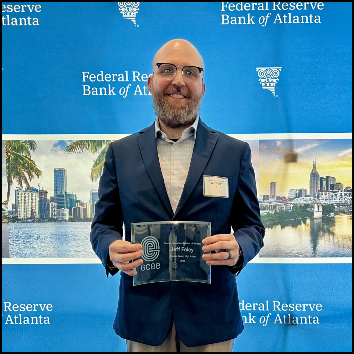 Congratulations to Jeff Foley of Douglas County High School for being named the recipient of the Georgia Council on Economic Education’s 2026 Georgia Economics Teacher of the Year Award. This prestigious honor recognizes his outstanding classroom excellence, dedication to student learning, and exceptional leadership in advancing economics education for students in Georgia.